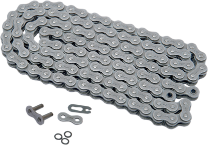 Features quad pin riveting, solid bushings and rollers, and tough O-ring seals, Shot-peened and pre-stretched, Made in Japan, Chain includes both clip and rivet master link, Recommended for motorcycles originally equipped with O-ring chains.